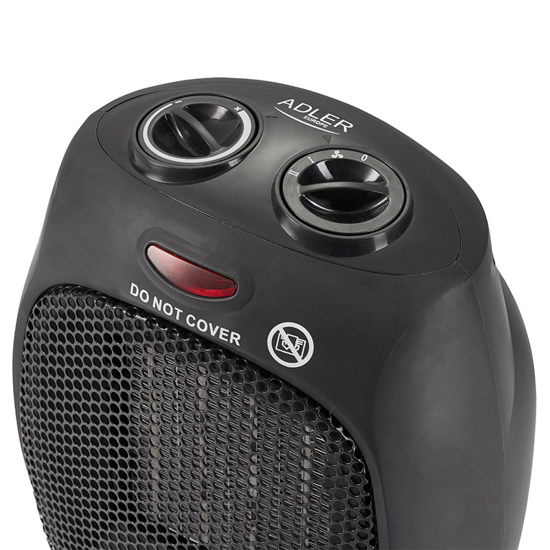 Aeroterma Adler AD 7702 este fabricata din materiale rezistente, are dimensiuni reduse si functioneaza doar in pozitie verticala. Poate fi folosita atat pentru incalzire, datorita elementelor de incalzire ceramice, dar si ca racitor de aer, datorita ventilatorului incorporat. In partea superioara este prevazuta cu doua butoane: cu cel din dreapta putem regla viteza de ventilatie, iar cel din stanga regleaza nivelul de caldura pe care dorim sa il elibereze aeroterma.
