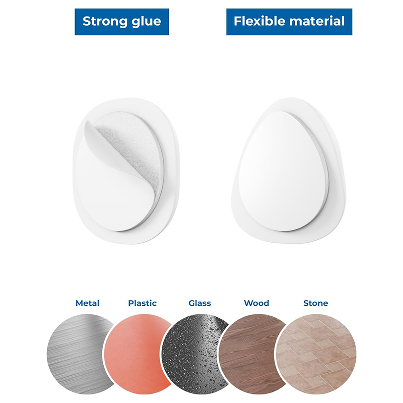 Acest produs facilitează organizarea, organizarea și fixarea cablurilor. Instalarea este rapidă, fără instrumente, datorită suportului autoadeziv care aderă fiabil