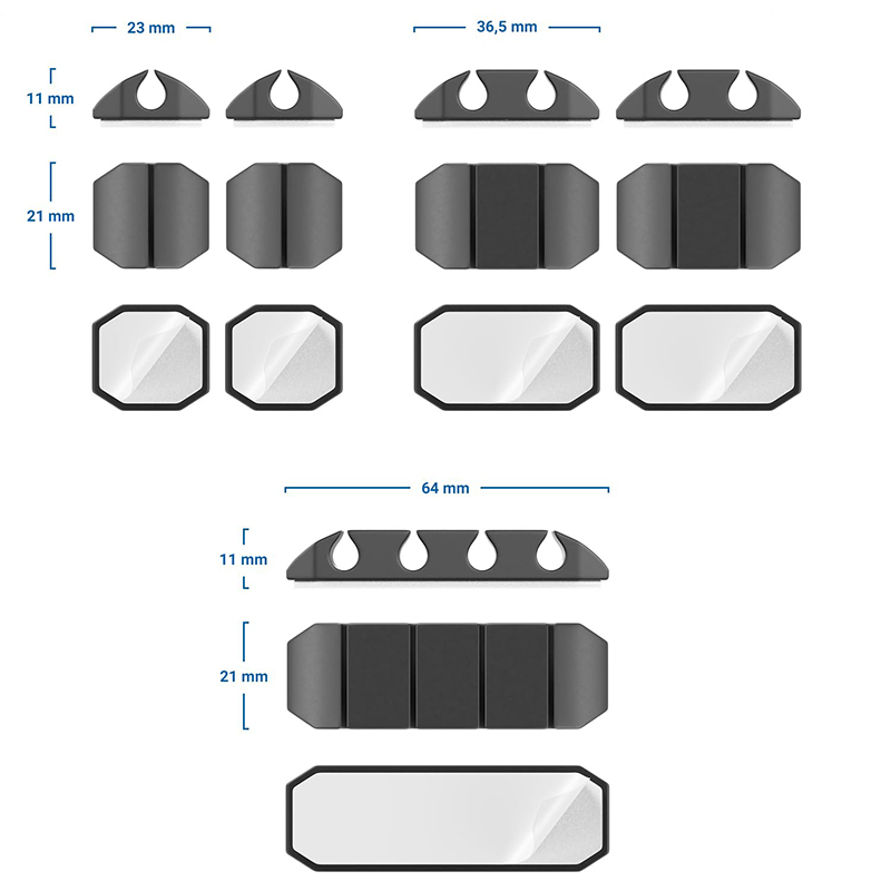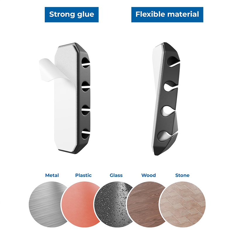 Acest produs facilitează organizarea, organizarea și fixarea cablurilor. Instalarea este rapidă, fără instrumente, datorită suportului autoadeziv care aderă fiabil