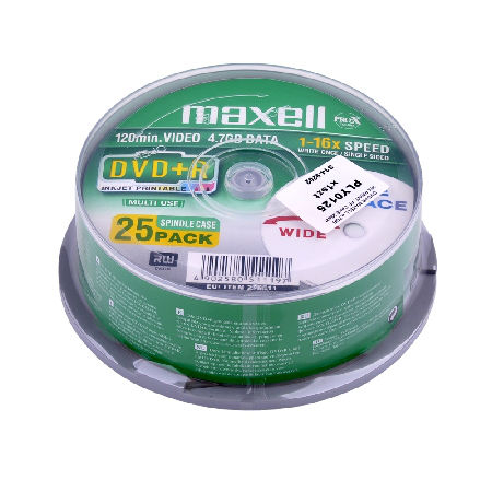 DVD+R marca MAXELL, capacitate 4.7 GB, viteza max. 16X, set 25 buc.