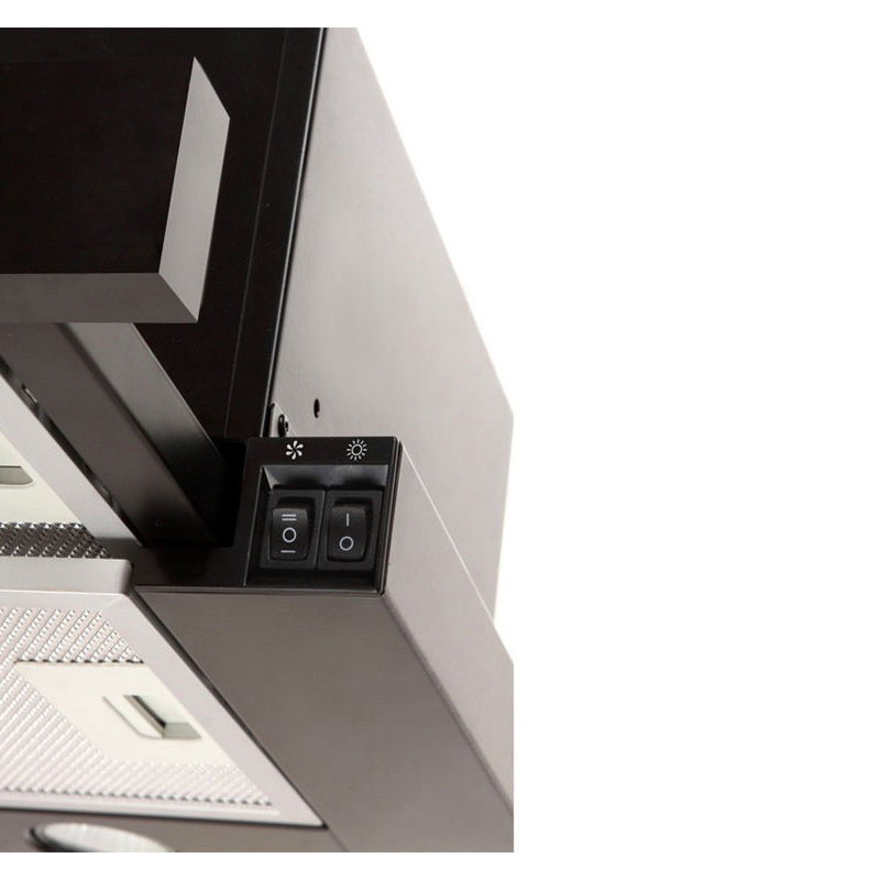 Hota este echipata cu un motor puternic si silentios, cu trei viteze de rotatie, cu o turbina cu capacitatea de 1200 m3 / h, cu lampi LED luminoase si economice, precum si cu un control mecanic sigur.