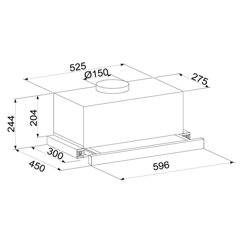 Hota Telescopica Incorporabila Tornado Storm 1200 (60), 1 motor, latime 60 cm, 3 viteze, absorbtie 1200 m3/ora, Inox.