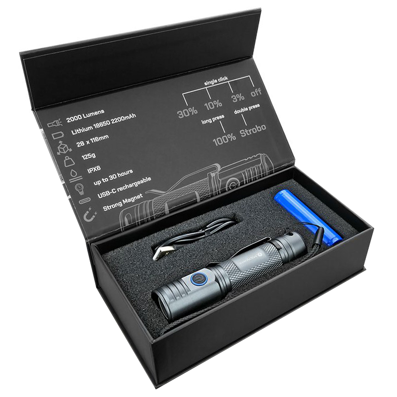 FL-2000R este o lanternă portabilă și puternică de la marca everActive. Cu un flux luminos de 2000 de lumeni, puteți oferi o iluminare excelentă chiar și în întuneric complet.