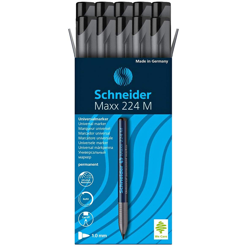 Marker universal OHP Schneider Maxx 224 M permanent. Markerele OHP sunt destinate scrierii pe foliile de retroproiector sau pe orice suprafata lucioasa: plastic, portelan, sticla, ceramica, metal etc. Scrisul se usuca foarte repede si ramane stralucitor.